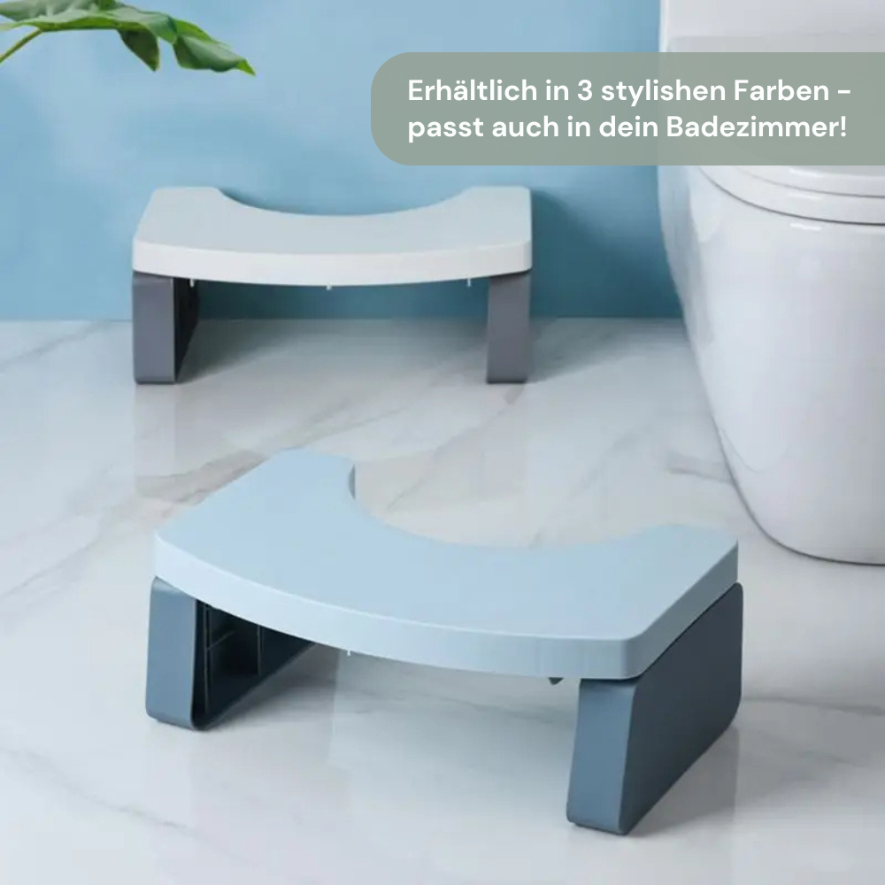 Der Squatly Toilettenhocker passt dank seiner ergonomischen Form unter jede Toilette. Falls du ihn mal nicht brauchst kannst du ihn dank der Klappfunktion ganz easy verstauen.